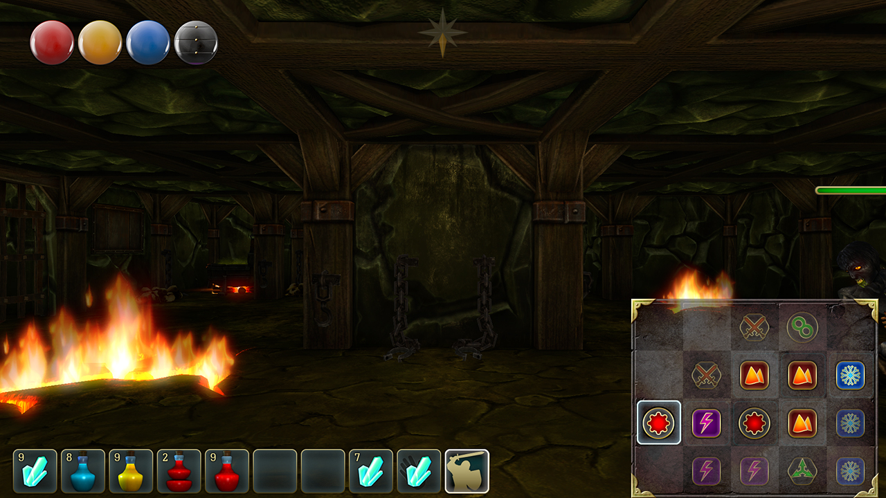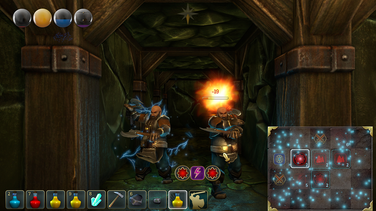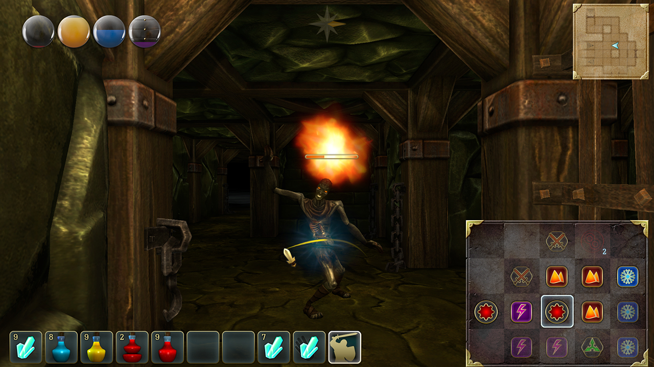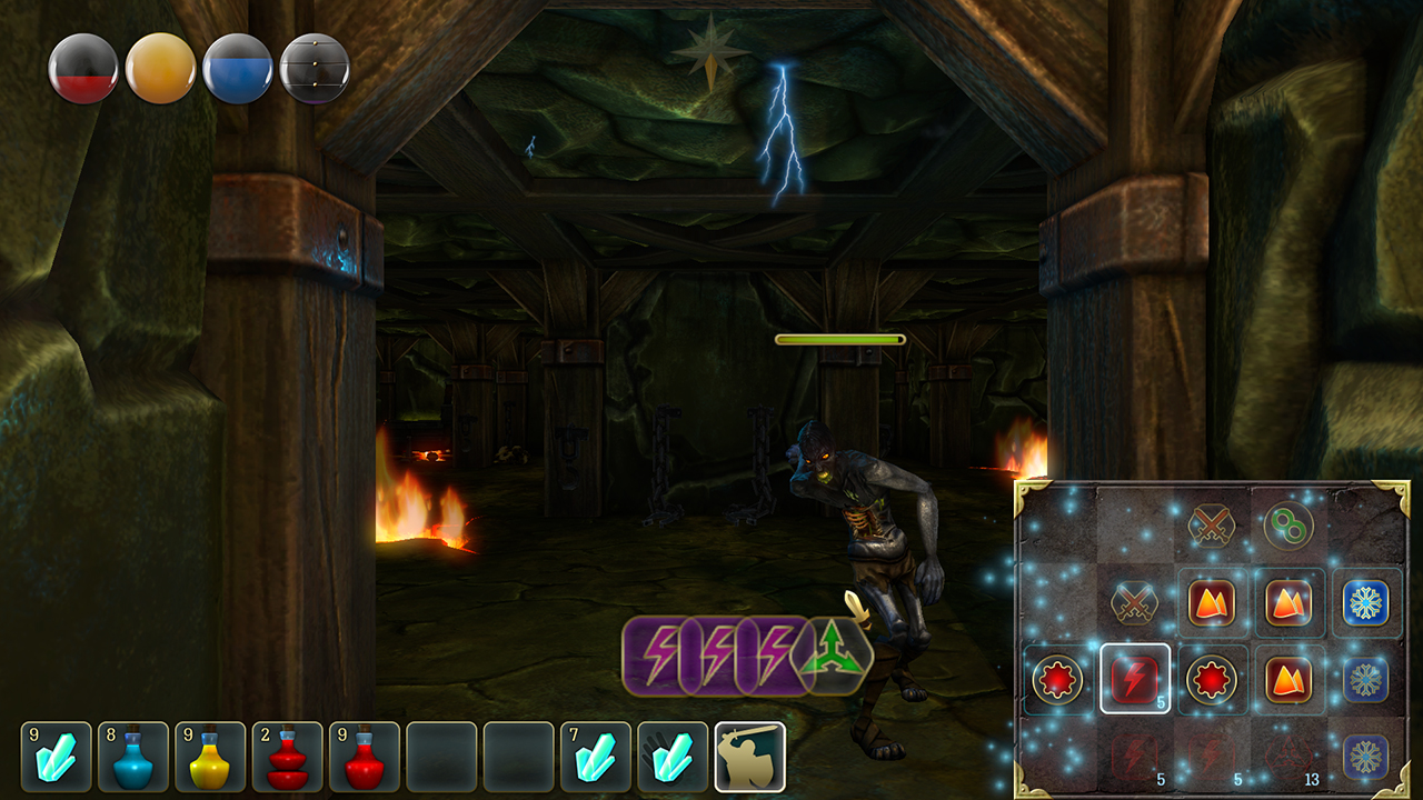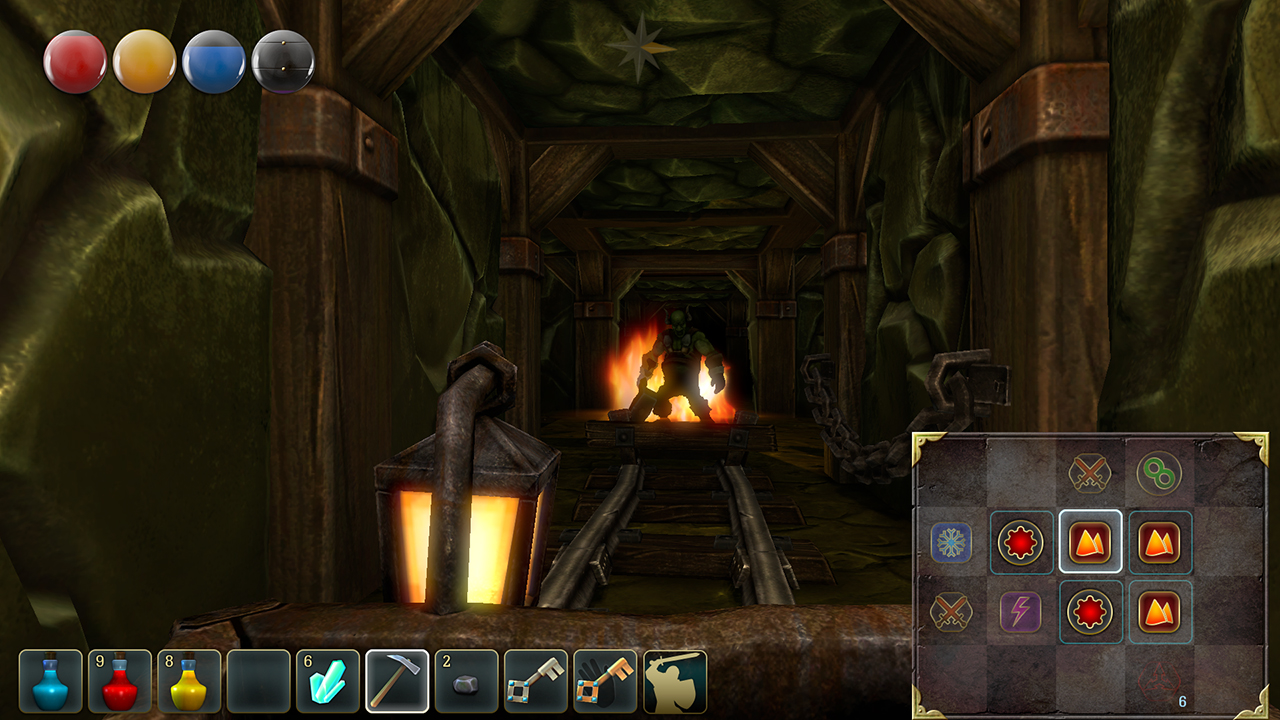 In this mode, you can cast your spells. First, you have to find a scroll and learn the incantation. Then you have to move the appropriate runes to the Magic Matrix and across them to cast the spell.