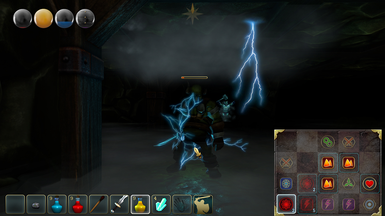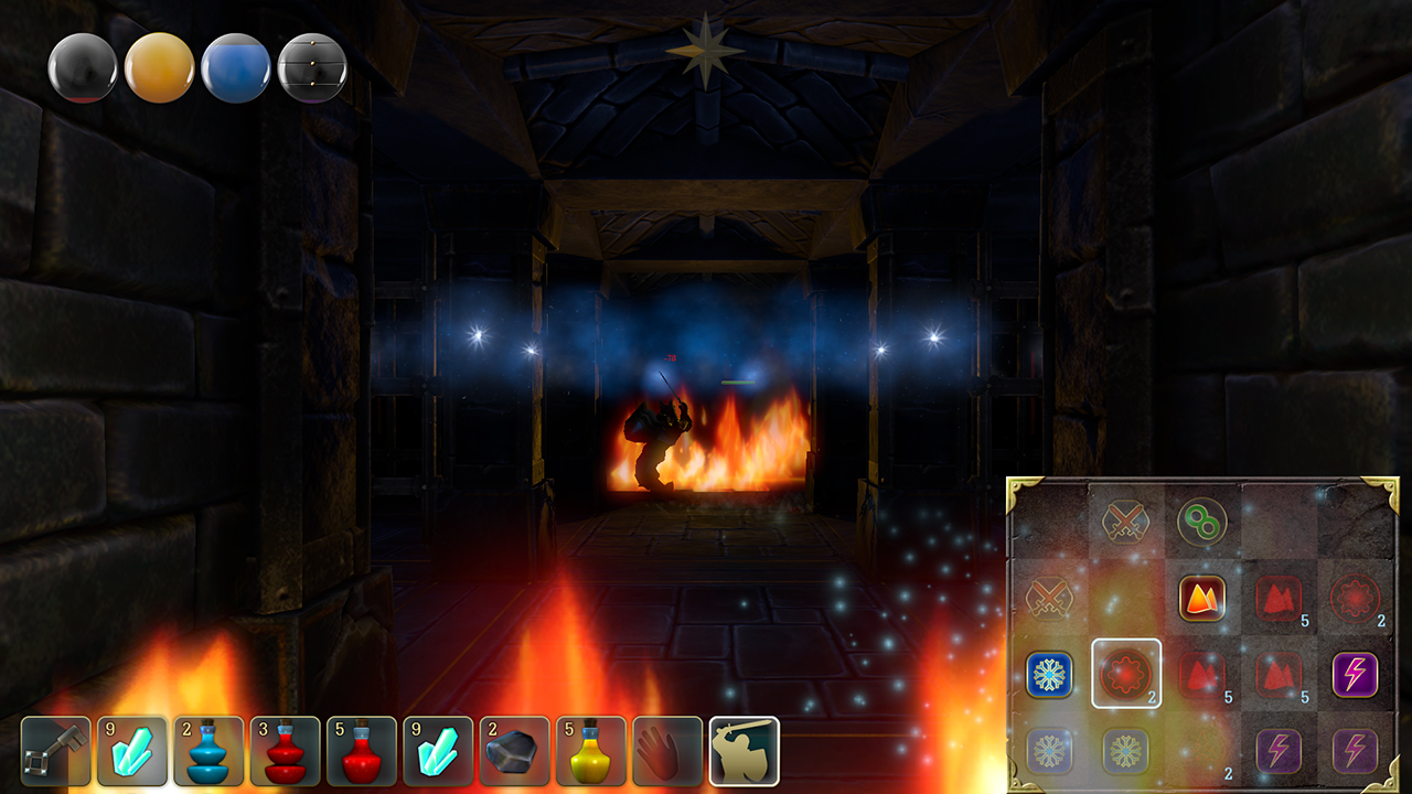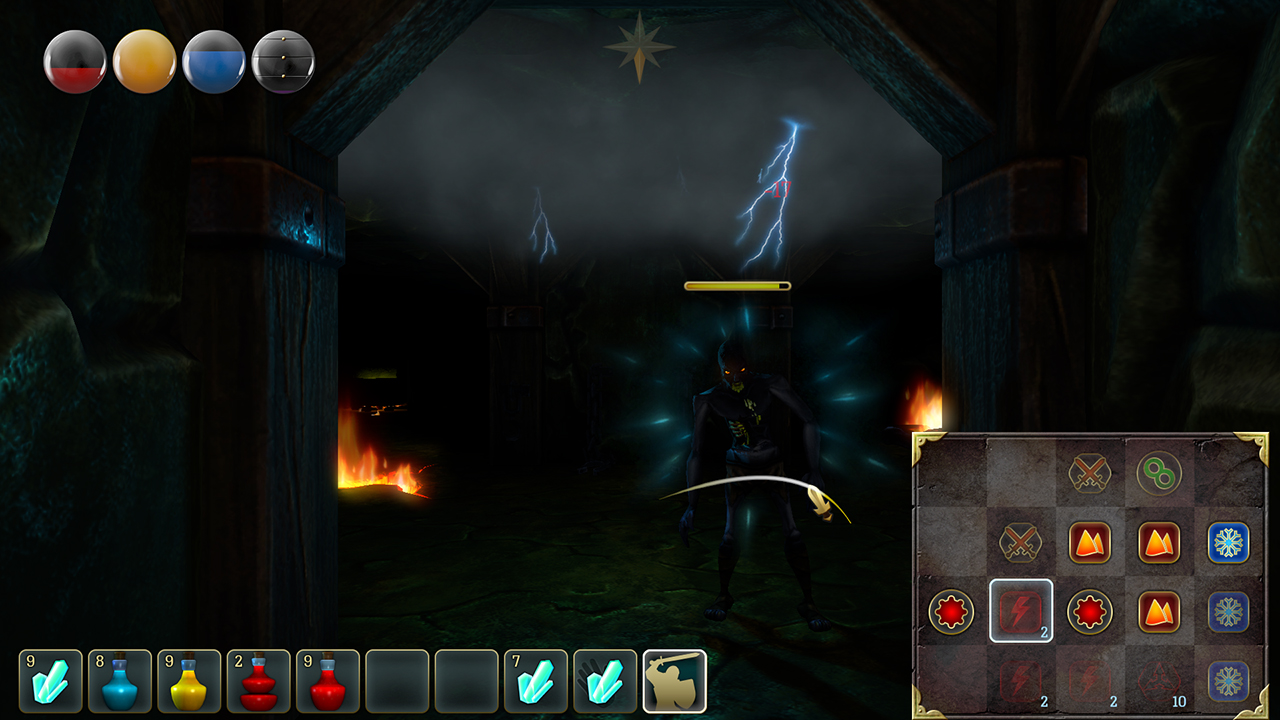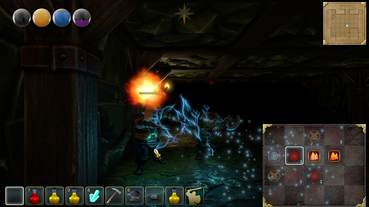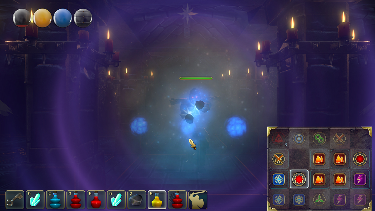 In this mode, you can cast your spells. First, you have to find a scroll and learn the incantation. Then you have to move the appropriate runes to the Magic Matrix and across them to cast the spell.